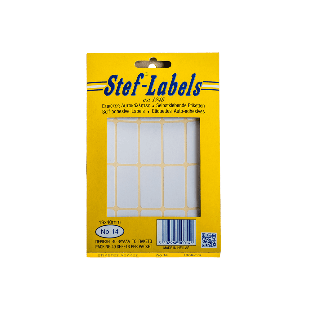 Stef Ετικέτες Αυτοκόλλητες 19x40mm 20/Φύλλο Λευκές 40 Φύλλα