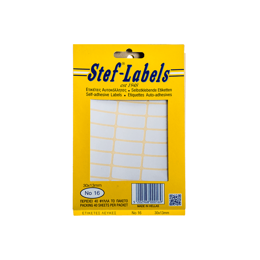 Stef Ετικέτες Αυτοκόλλητες 30x13mm 30/Φύλλο Λευκές 40 Φύλλα