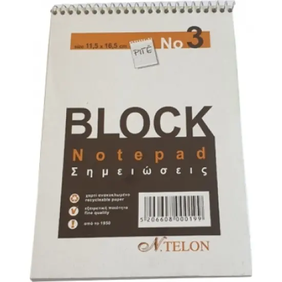 Κλασικό μπλοκ σημειώσεων με σπιράλ στο πάνω μέρος που επιτρέπει την εύκολη χρήση του μπλοκ και την προστασία των σημειώσεων από το ξεφύλλισμα.
