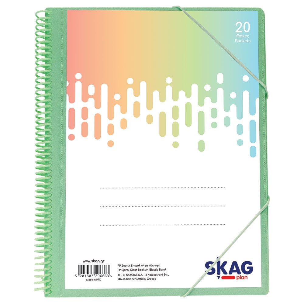 Skag Σούπλ Σπιράλ Α4 20 Θήκες με Λάστιχο Παστέλ (Διάφορα Χρώματα)