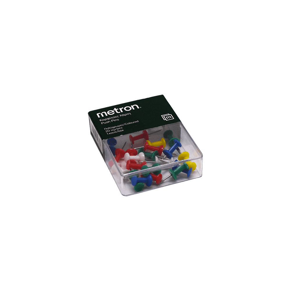Πινέζες Χάρτη Σβούρα Metron Πλαστικό Κουτί 20τεμ 10 Κουτιά