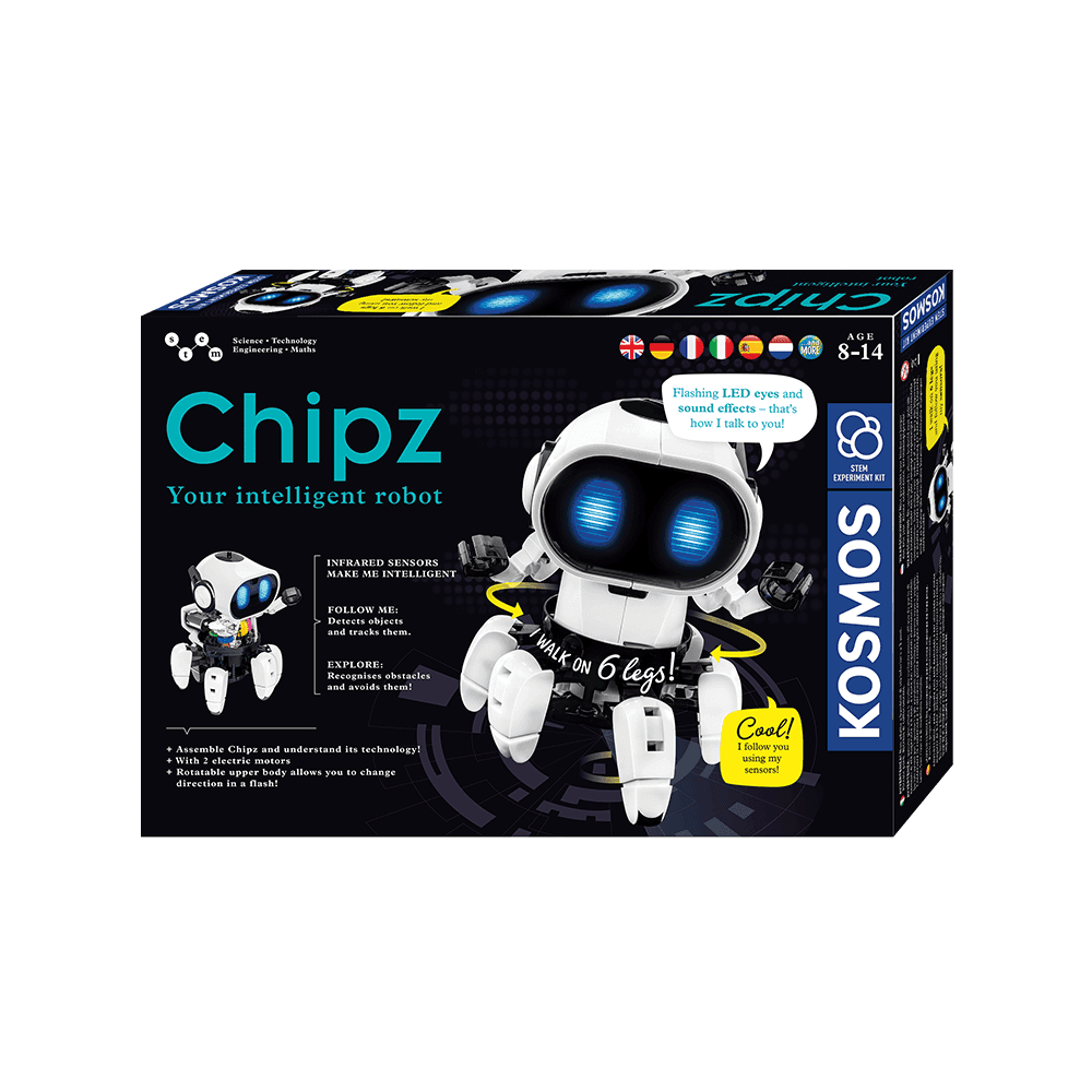 Συναρμολογώντας το παιχνίδι Έξυπνο Ρομπότ του Kosmos μπορείς να αποκτήσεις έναν νέο φίλο. Ο Chipz περπατάει με τα 6 ρομποτικά πόδια του και σε ακολουθεί παντού με τους έξυπνους αισθητήρες του. Αν συναντήσει μπροστά του κάποιο εμπόδιο μπορεί να το αποφύγει στρίβοντας προς άλλη κατεύθυνση.