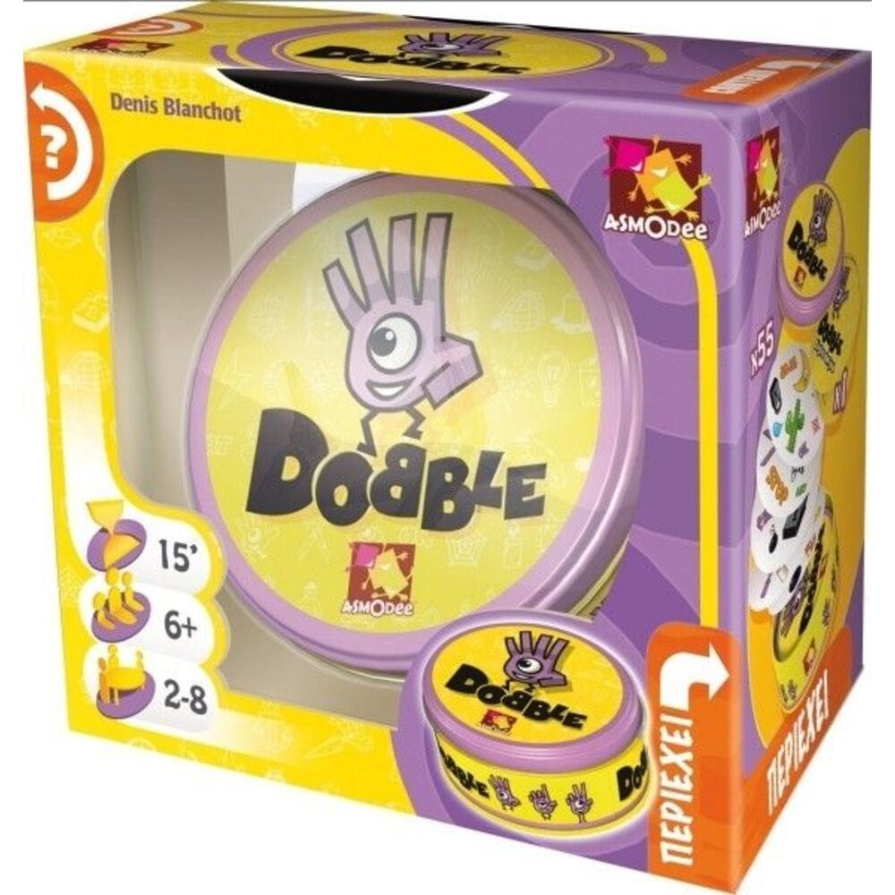 Dobble: πάνω από 50 σύμβολα, 55 κάρτες, 8 σύμβολα ανά κάρτα και πάντα μόνο ένα κοινό σύμβολο σε οποιοδήποτε ζευγάρι καρτών!