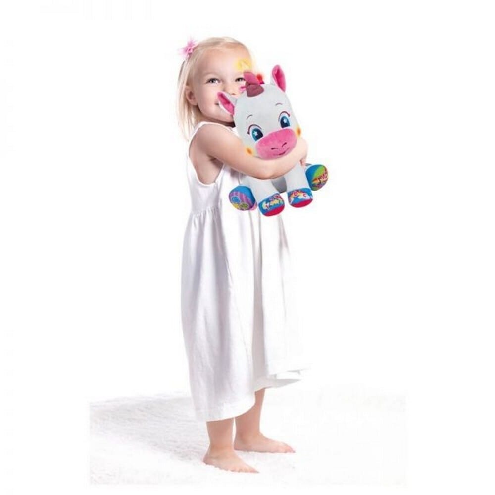 Βρεφικό χνουδωτό μονόκερος με πολλά ηχητικά και φωτεινά εφέ που θα βοηθήσουν το παιδί να ανακαλύψει τα πρώτα γράμματα και τους αριθμούς με εύκολο και διασκεδαστικό τρόπο.