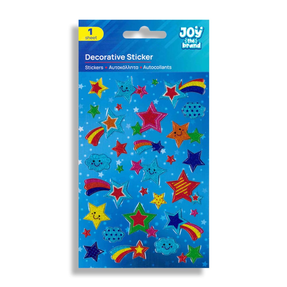 Πολύχρωμα με έντονα σχέδια και σχήματα τα αυτοκόλλητα της εταιρίας Joy The Brand πάντα αποτελούν μια καλή επιλογή διασκέδασης και δημιουργικότητας για τα παιδιά. Βοηθούν στην ανάπτυξη της λεπτής κινητικότητας καθώς απαιτούνται προσεκτικές κινήσεις ώστε να ξεκολλήσουν σωστά χωρίς να σκιστούν.