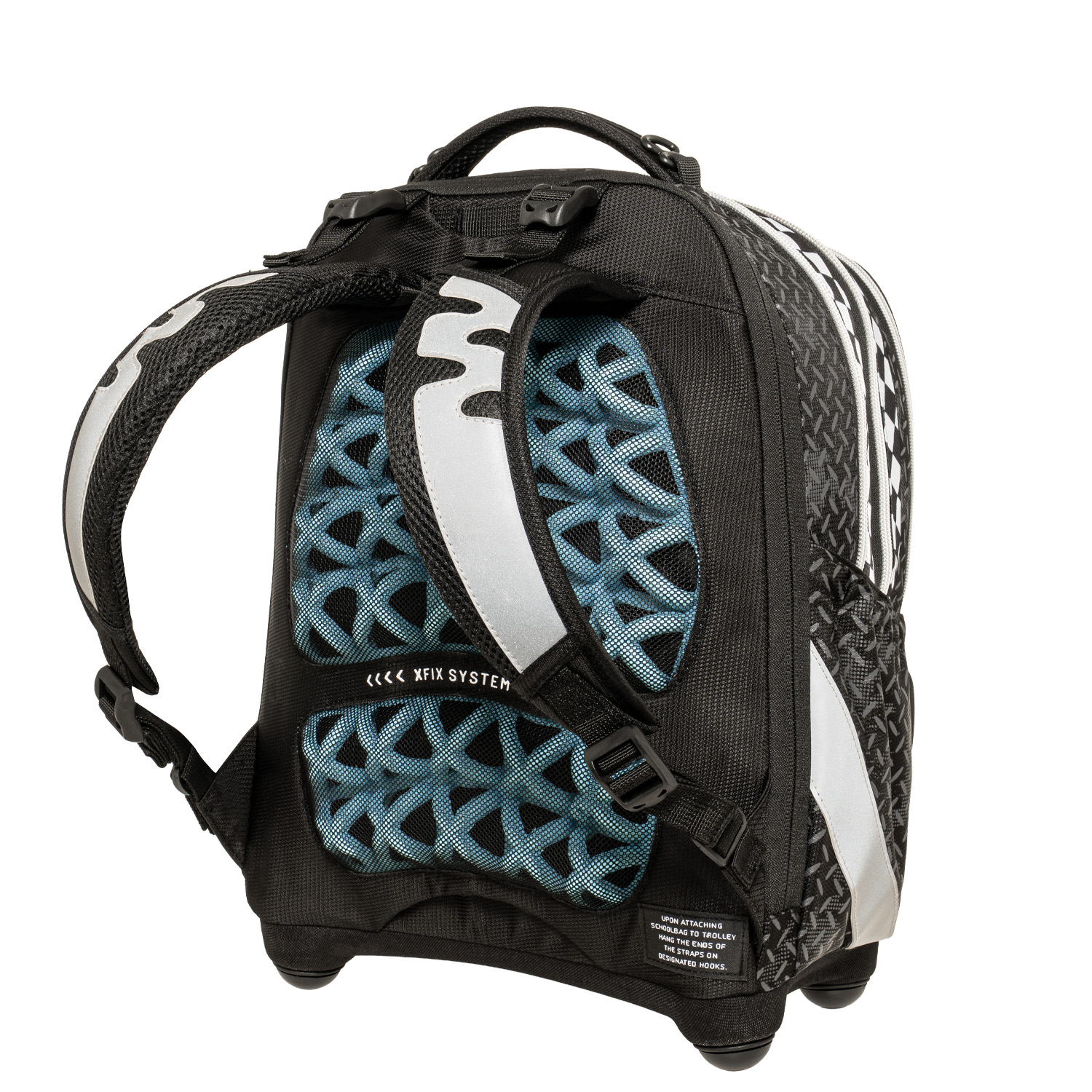 Μοναδικό σύστημα πλάτης με αντικραδασμική τεχνολογία, ιδιαίτερα διαπνέουσα, ώστε να αποφεύγεται η εφίδρωση.