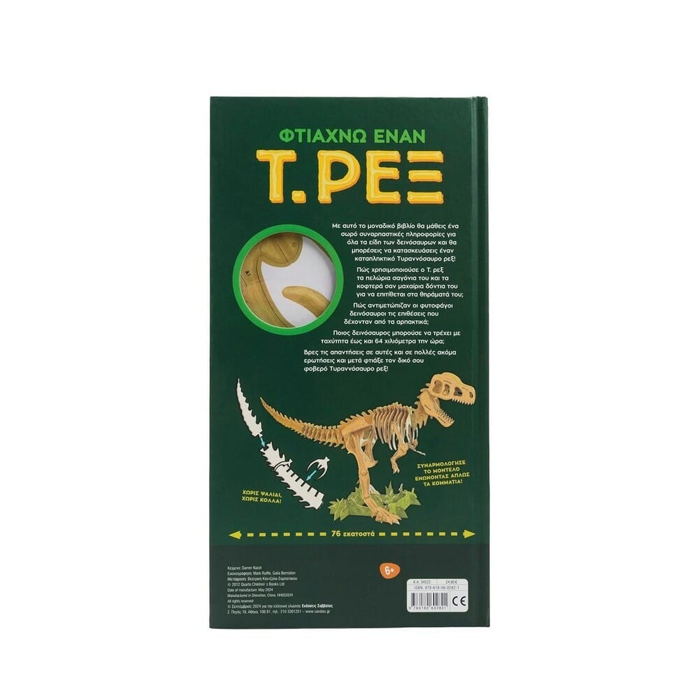 Με αυτό το μοναδικό βιβλίο θα μάθεις ένα σωρό συναρπαστικές πληροφορίες για όλα τα είδη των δεινόσαυρων και θα μπορέσεις να κατασκευάσεις έναν καταπληκτικό Τυραννόσαυρο ρεξ!Πώς χρησιμοποιούσε ο Τ. ρεξ τα πελώρια σαγόνια του και τα κοφτερά σαν μαχαίρια δόντια του για να επιτίθεται στα θηράματά του; Πώς αντιμετώπιζαν οι φυτοφάγοι δεινόσαυροι τις επιθέσεις που δέχονταν από τα αρπακτικά; Ποιος δεινόσαυρος μπορούσε να τρέχει με ταχύτητα έως και 64 χιλιόμετρα την ώρα;Βρες τις απαντήσεις σε αυτές και σε πολλές ακόμα ερωτήσεις και μετά φτιάξε τον δικό σου φοβερό Τυραννόσαυρο ρεξ!Συναρμολόγησε το μοντέλο ενώνοντας απλώς τα κομμάτια! Χωρίς ψαλίδι, χωρίς κόλλα!