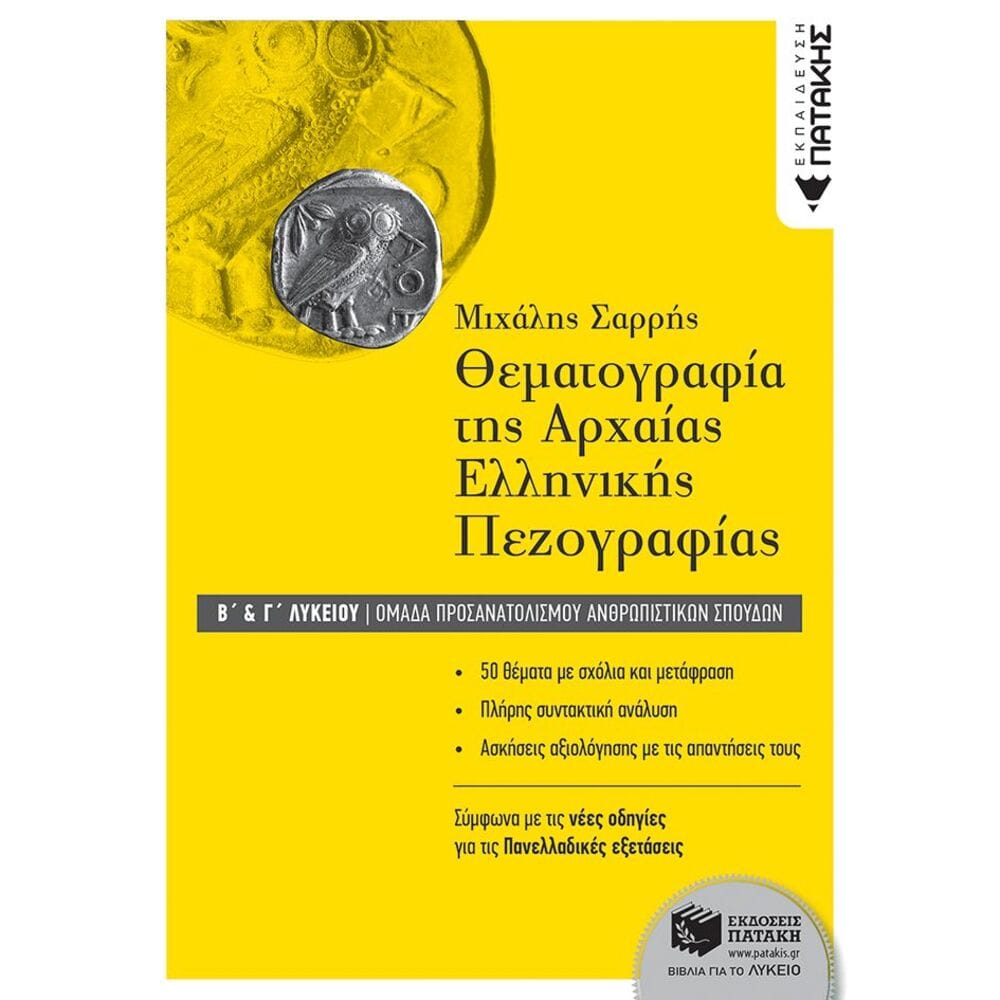 Το βιβλίο αυτό θα αποτελέσει πολύτιμο αρωγό για τους μαθητές, για να εισχωρήσουν στα μυστικά του θησαυρού της αρχαίας ελληνικής γλώσσας, και ένα σημαντικό εργαλείο για τους εκπαιδευτικούς, προκειμένου να οργανώσουν συστηματικά τη δουλειά τους.Περιέχει:- 50 θέματα διαβαθμισμένης δυσκολίας από ένα ευρύ φάσμα συγγραφέων της αττικής πεζογραφίας- Πληροφοριακά στοιχεία γραμματολογικού περιεχομένου για το κάθε κείμενο- Πλούσια λεξιλογική και γραμματική επεξεργασία όλων των κειμένων- Πλήρη συντακτική ανάλυση κάθε κειμένου- Γραμματικές, συντακτικές και μεταφραστικές παρατηρήσεις και οδηγίες- Υποδειγματική μετάφραση σε αντιστοίχιση με το αρχαίο κείμενο- Ασκήσεις αξιολόγησης για κάθε κείμενο (ερωτήσεις κατανόησης, ασκήσεις γραμματικής και συντακτικού- Απαντήσεις όλων των ερωτήσεων / ασκήσεων- Λειτουργικό ευρετήριο- Επιλεγμένη βιβλιογραφία