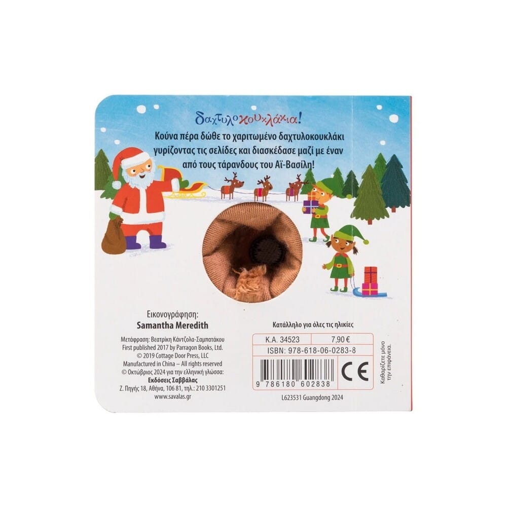 Κούνα πέρα δώθε το χαριτωμένο δαχτυλοκουκλάκι γυρίζοντας τις σελίδες και διασκέδασε μαζί με έναν από τους τάρανδους το Αϊ-Βασίλη!
